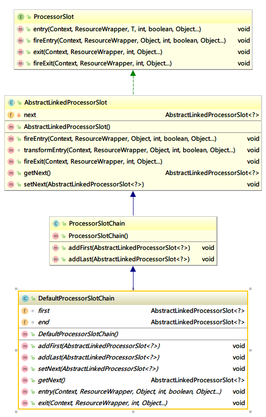 6public abstract class ProcessorSlotChain extends AbstractLinkedProcessorSlot<Object> {